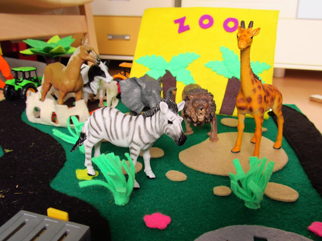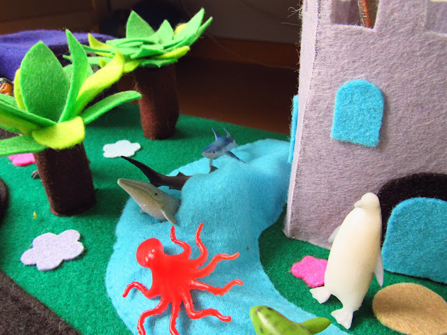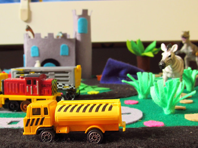 E agora os detalhes com portas que abrem, rochas onde se podem esconder coisas, aviões que aterram em qualquer lugar, animais que vivem em castelos, túneis, comboios que fazem som, gruas que depois se descobre que até mexem e animais que entram e saem do mar para conviver com outros animais ou andar na estrada. a imaginação aqui não tem limites e a ela acrescenta-se outros brinquedos que se misturam em tempos de diversão infindáveis (até agora).