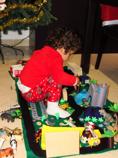 Depois das férias (de que irei falar mais adiante) _ O Natal. E neste Natal uma das prendas preferidas do Diogo foi a cidade de feltro em 3D feita por mim.