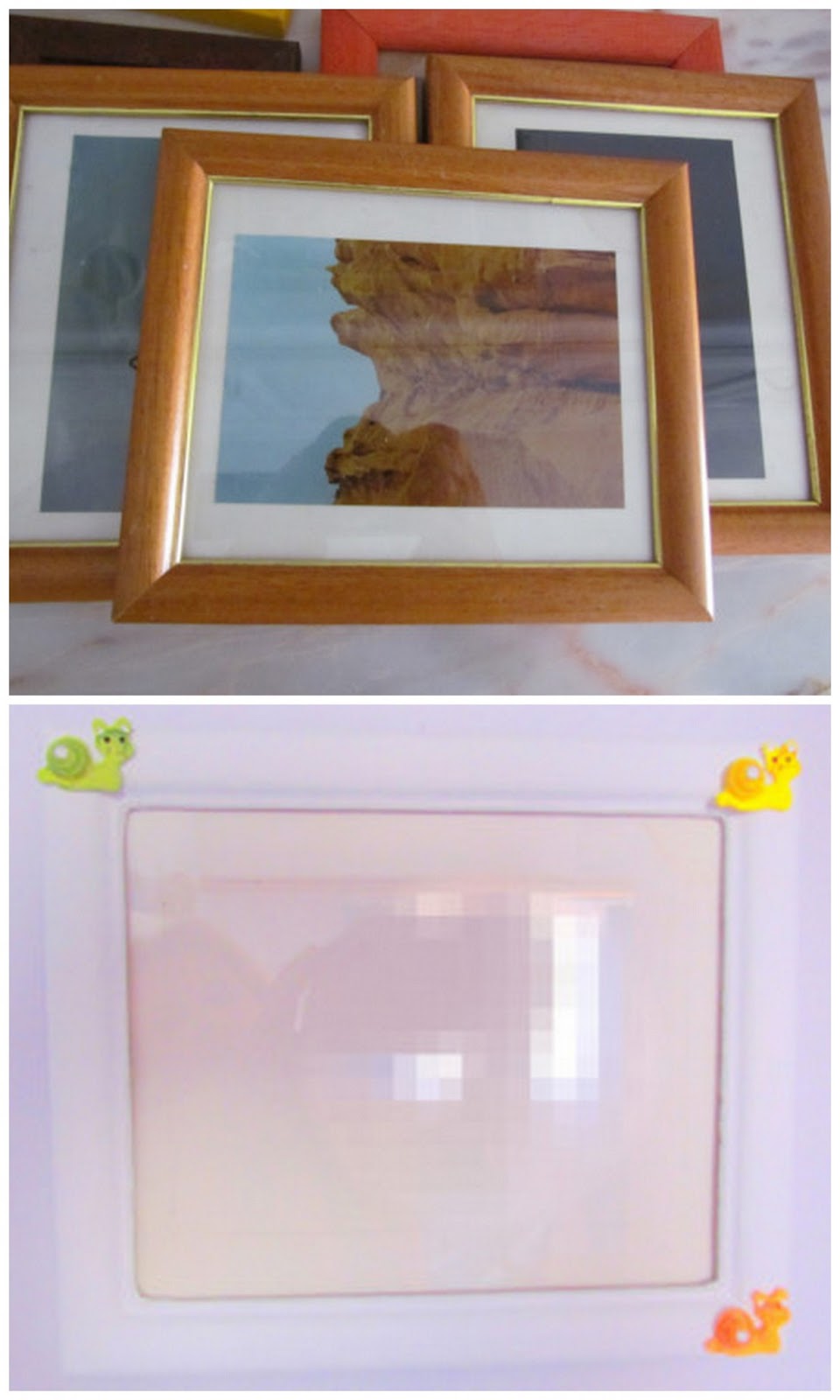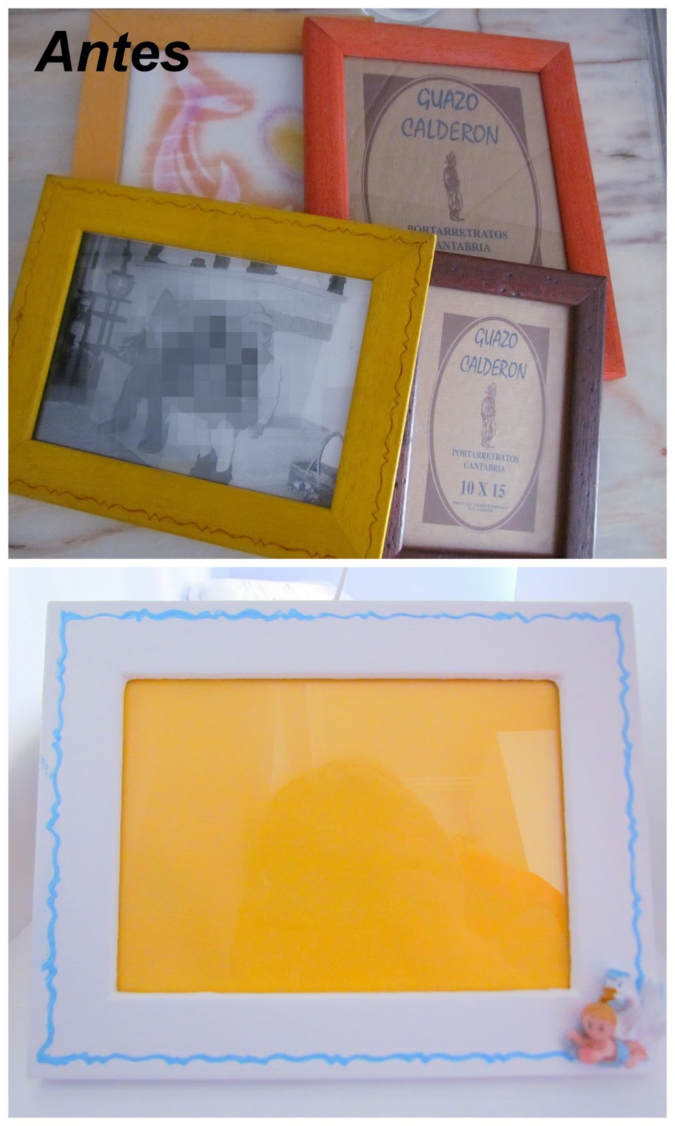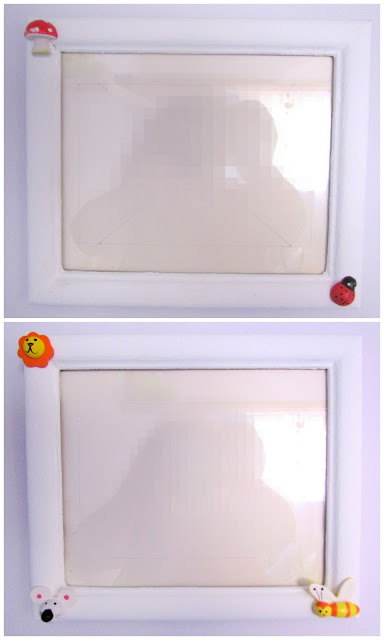- as molduras iam quase a caminho do lixo na minha mãe, eu pintei-as e colei os enfeites que fui comprar na Zora.