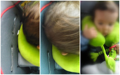 menino adormece a cada curva, a cada travagem a cabeça dele pende para a