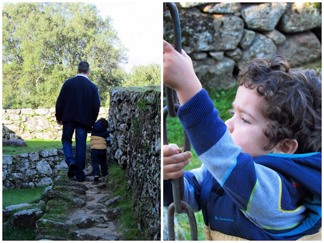 O Diogo adorou brincar no castelo e á volta das "igrejinhas". Tanto pediu que o pai descobriu uma com a porta aberta e acho que deve ter sido o ponto alto do dia para ele. O que o deixou um bocado chateado foi as ovelhas fugirem dele.