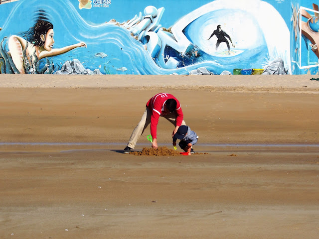 Agora que a chuva e o frio estão de volta recordo o 1º dia de praia deste ano do Diogo. Sim ele foi á praia, despiu-se e brincou dentro de água enquanto nós vestidinhos nem pensávamos nisso.
