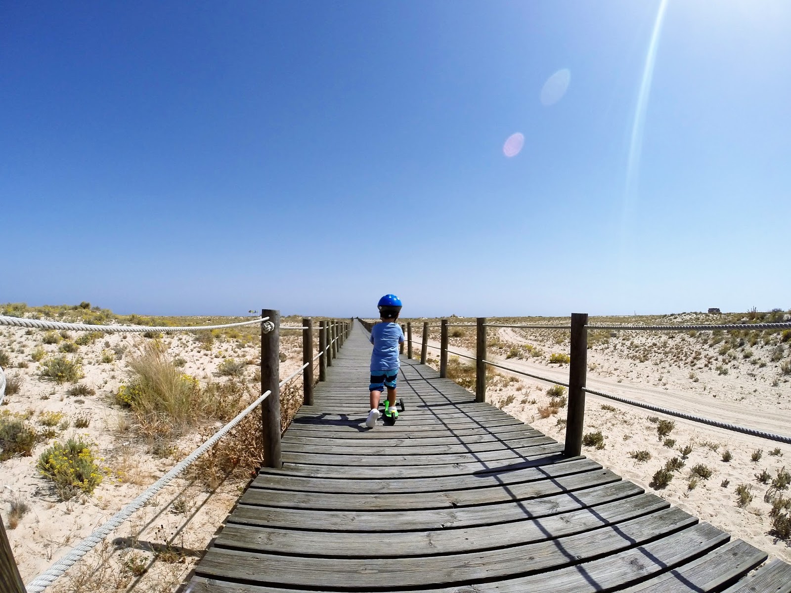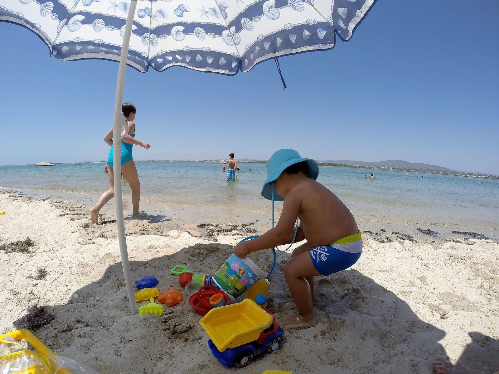 Quando chegamos ficamos desiludidos com a quantidade de algas que nos impediam de tomar banho na costa e que é a praia mais perto de onde nos encontrávamos mas rapidamente confirmamos a situação indo para a praia dos barcos, no outro lado da ilha e onde o Diogo adorou estar porque tinha muitas crianças e água era rasteirinha por alguns metros o que lhe permitia entrar, estar e sair sem medo ou ajuda.