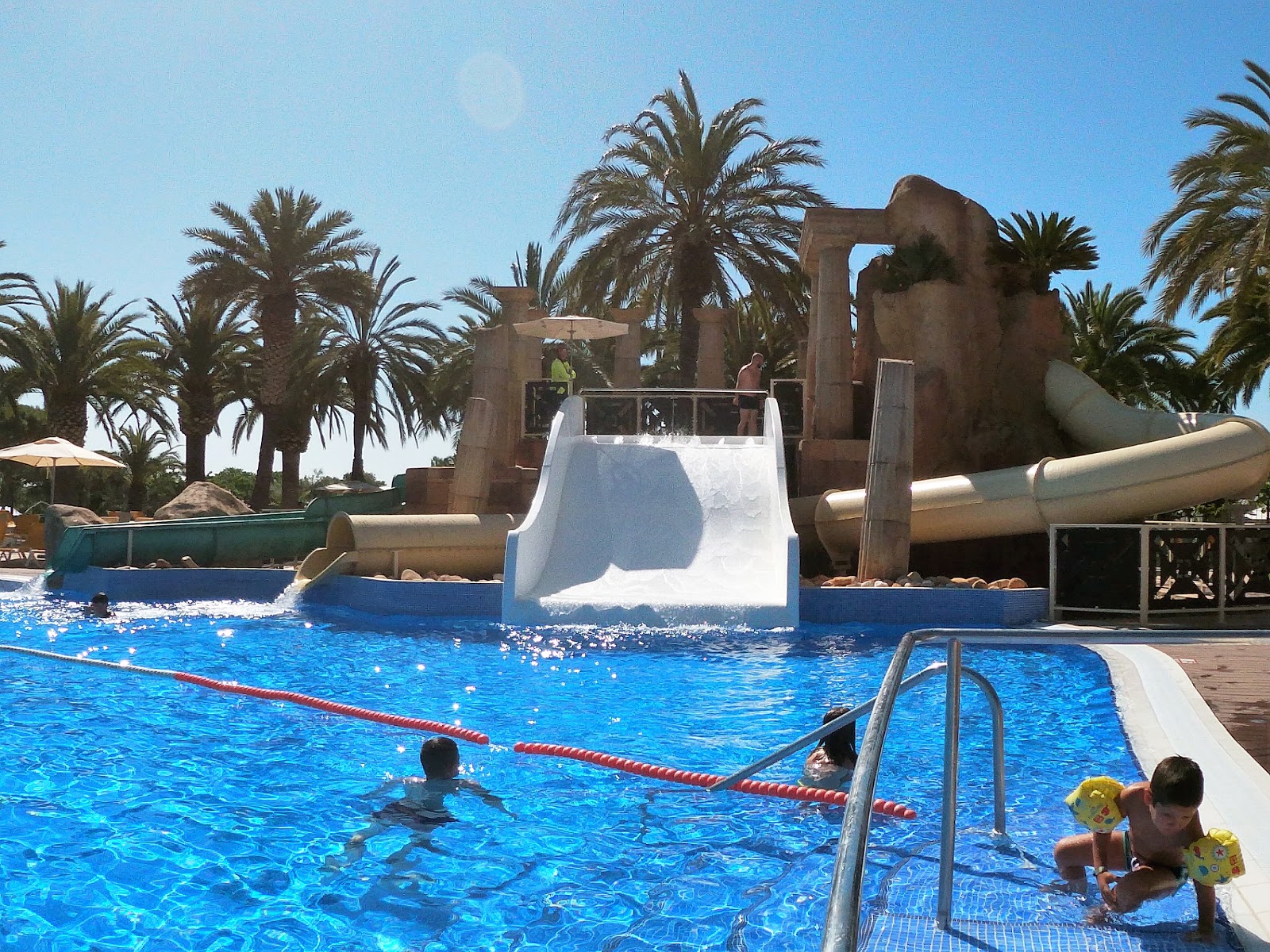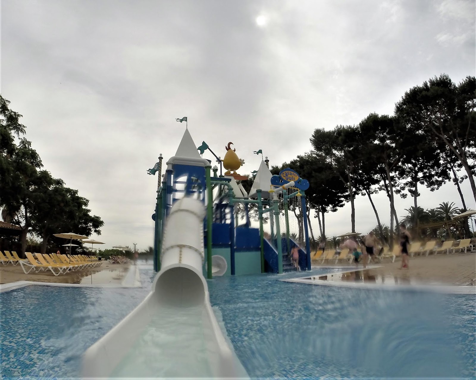Está muito perto do mar mas isso não nos interessou porque moramos perto da praia e ali o Diogo queria era desfrutar das várias piscinas, dos vários tubogans, escorregas, parques, actividades e ludoteca.